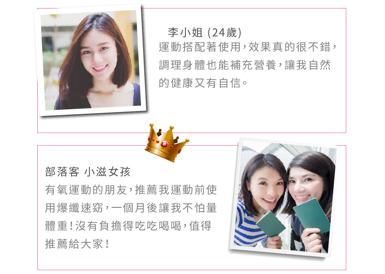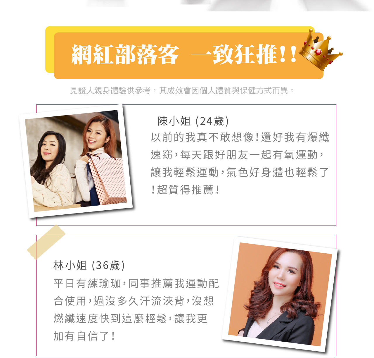 使用期間請保持正確飲食習慣,避免暴飲暴食、避免宵夜及大餐 ‧使用期間建議搭配適當運動,更快速達成理想目標!