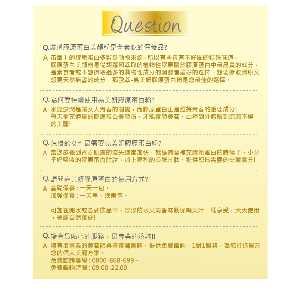 品 名:【歐萃OTREE】亮美妍膠原蛋白粉(素食可食)
