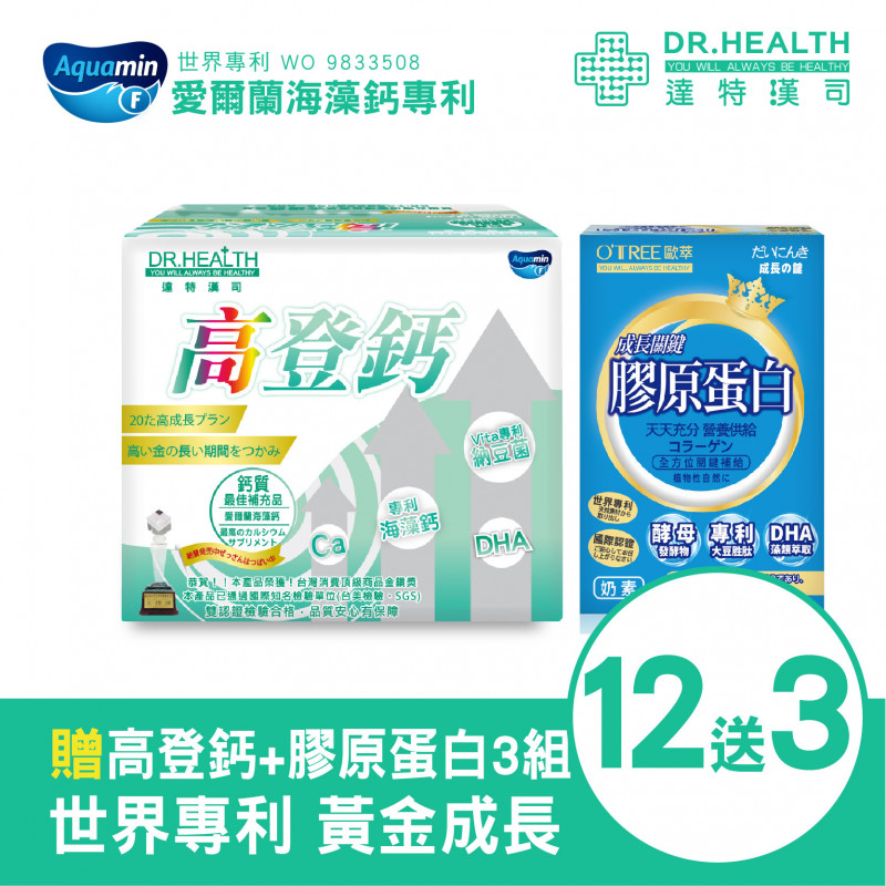 - 【達特漢司】高登鈣第三代黃金熱銷版+鑽活膠原蛋白 (12組)