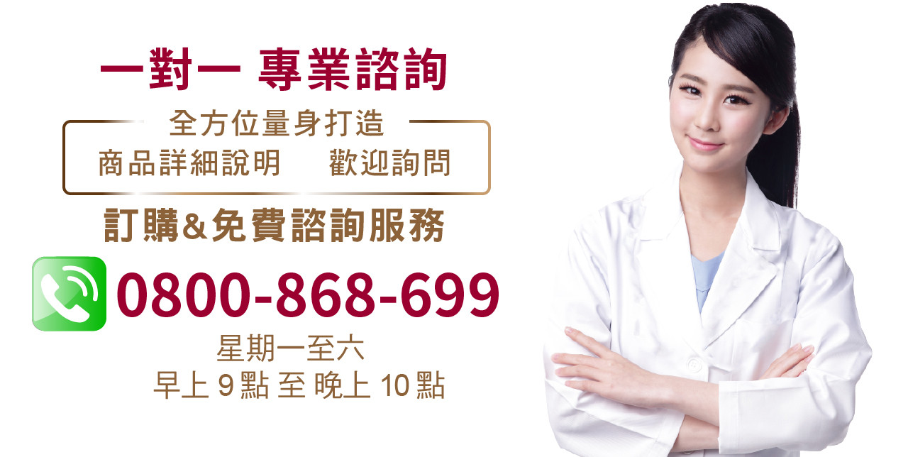 ※根據食品安全衛生法,廣告不得論及療效等字詞、如您想更進一步了解,可撥打免付費電話0800-868-699,將有專業諮詢師與您一對一深入講解。