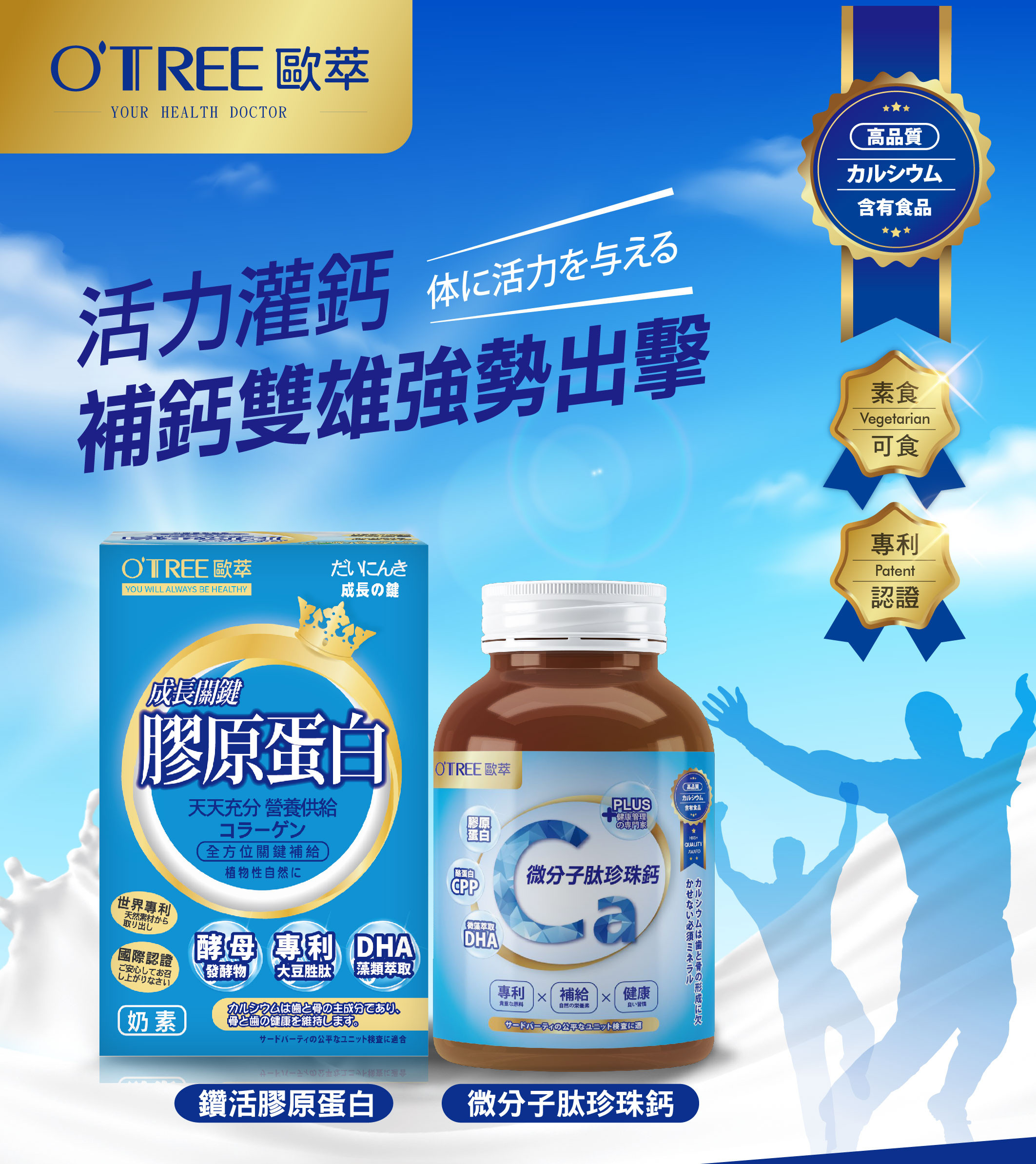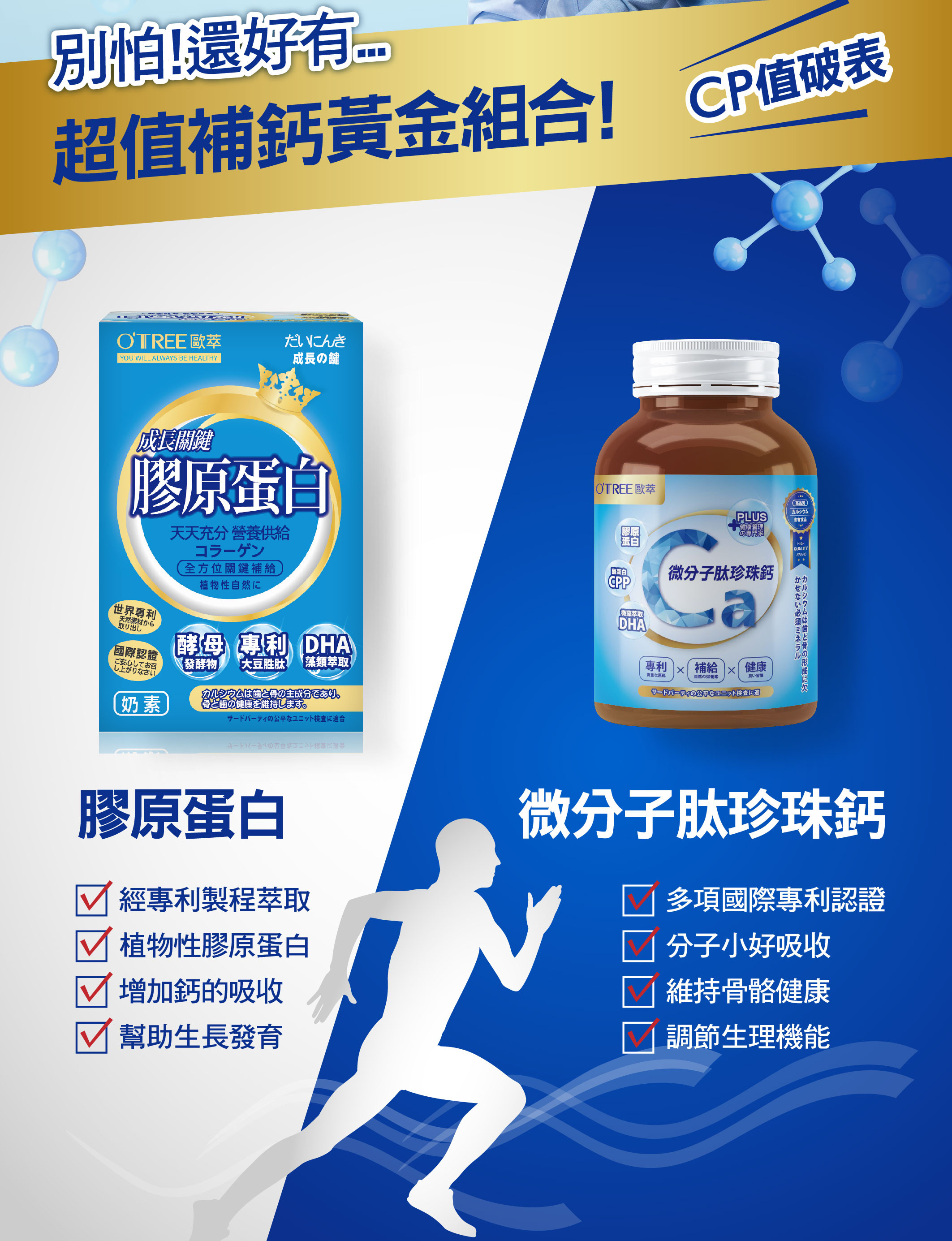 【歐萃OTREE】微分子肽珍珠鈣+鑽活膠原蛋白粉(6組)